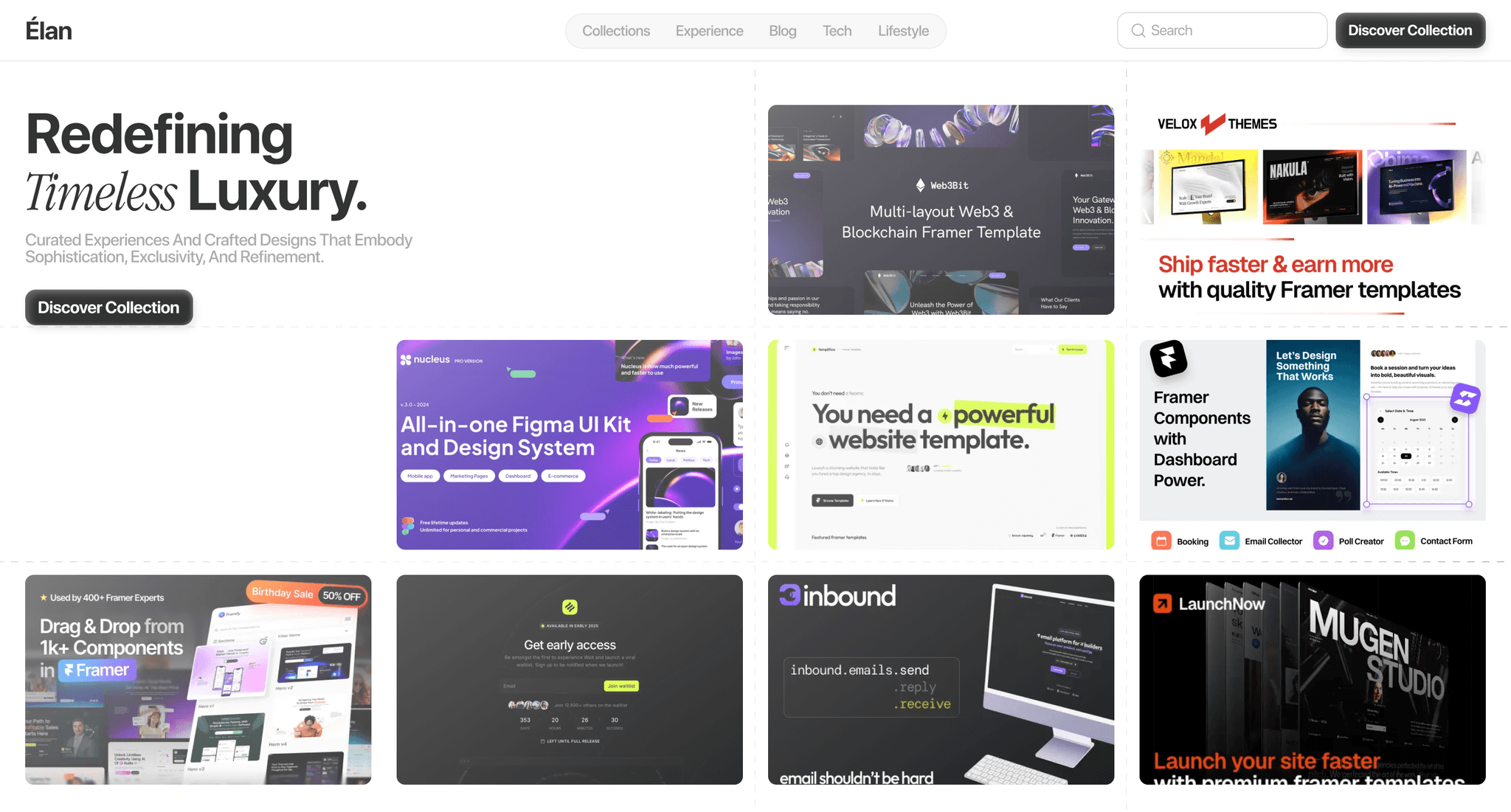 Hover-animated cards with dynamic image reveals and smooth rotation transitions.